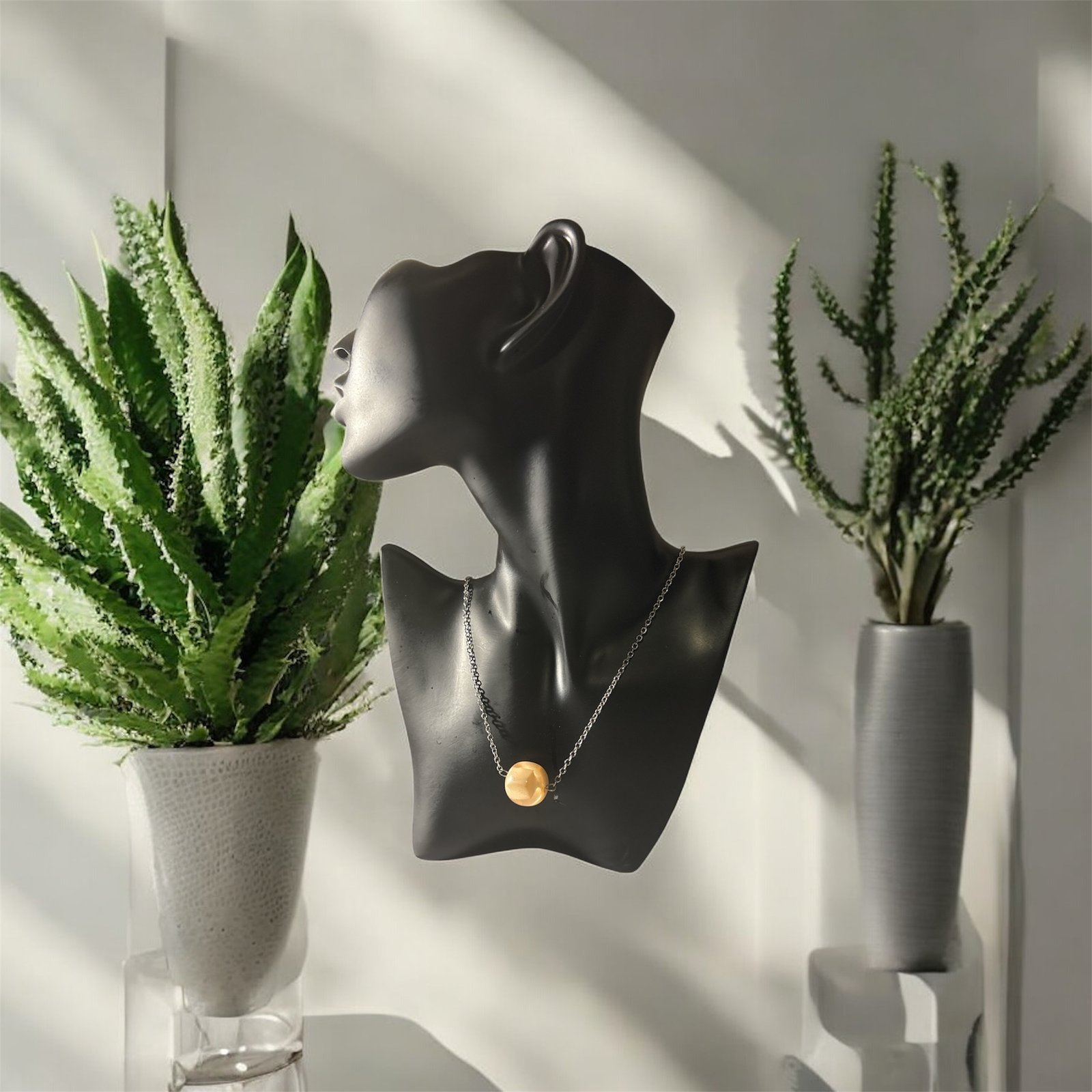 This chain made with metal stainless , with a big pearls craft , it is simple chain , very nice chain .
