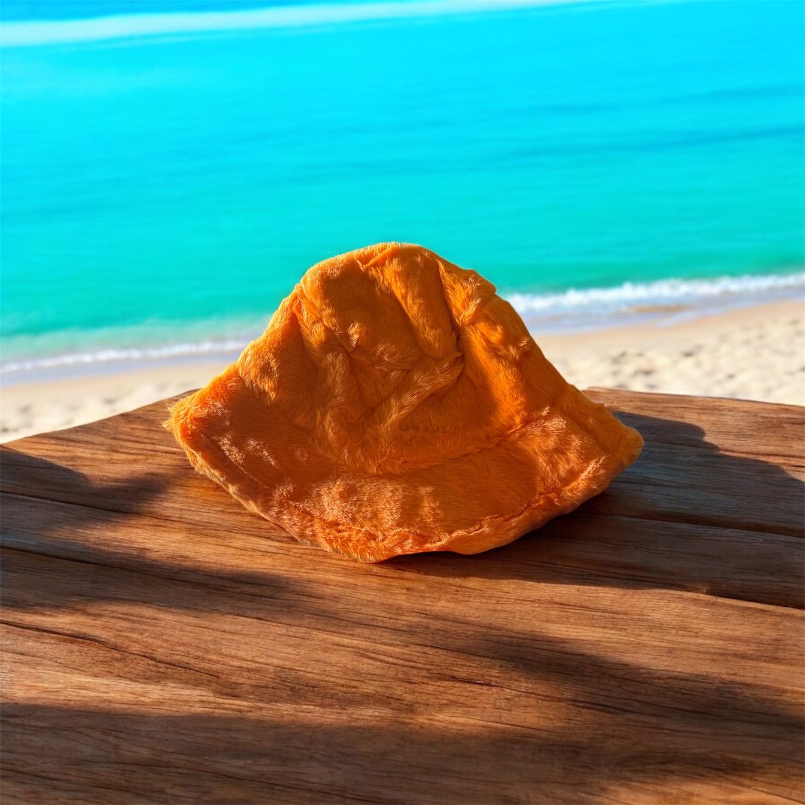 This orange faux Rabbit fur bucket Hat adult bucket Hat , this for winter Hat .