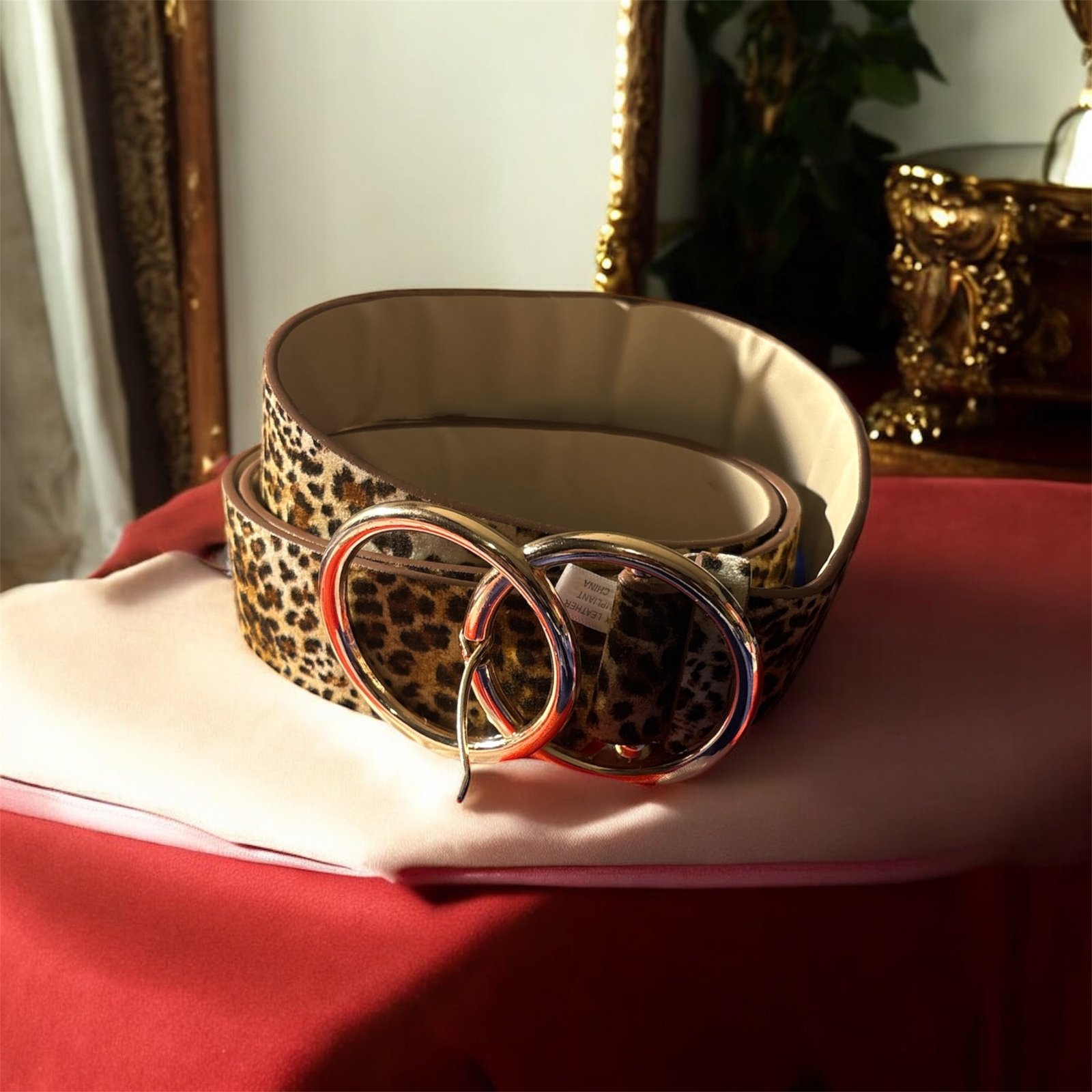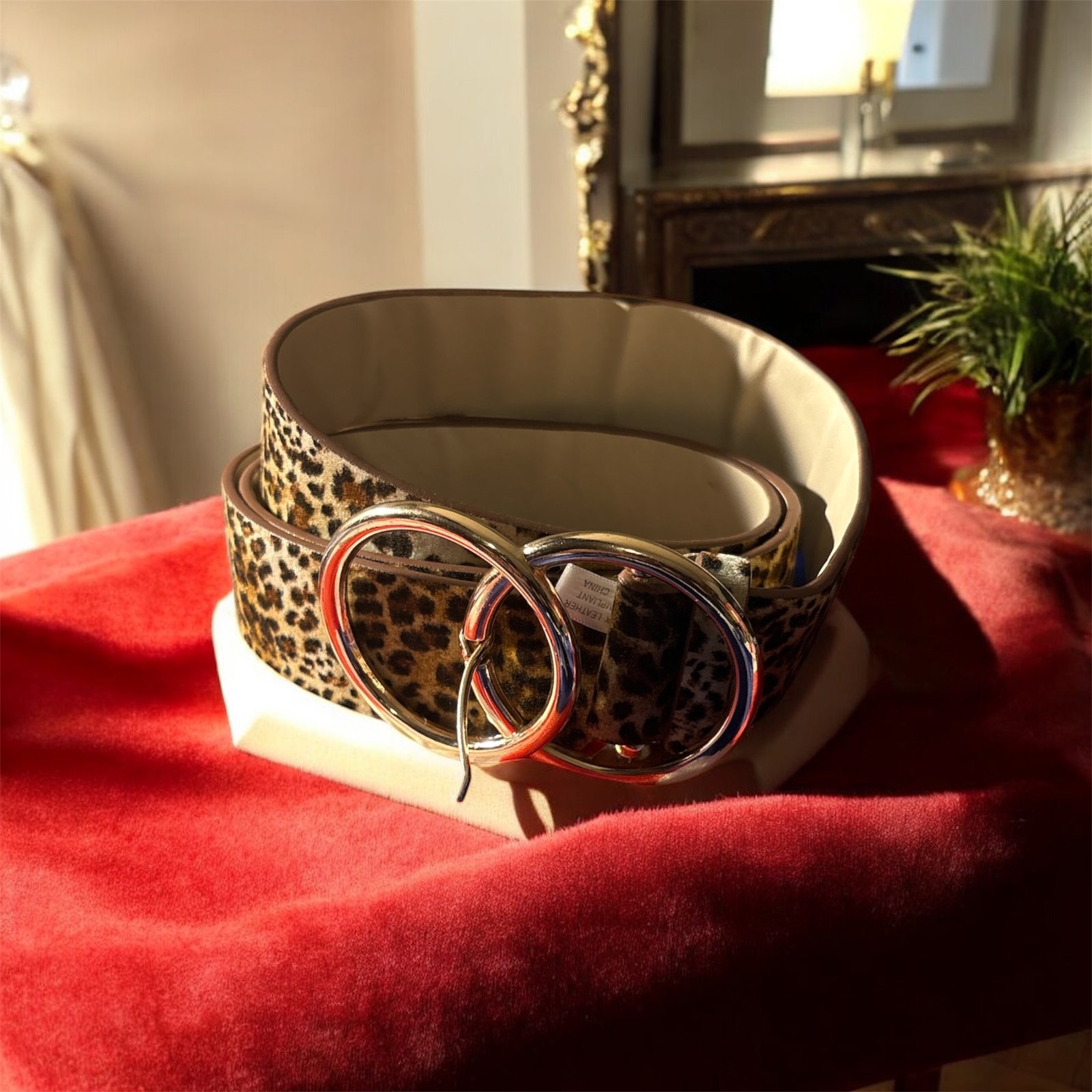 DaddyLove women leather belt with double ring buckle, plus size Leopard belt for women jeans dresses .